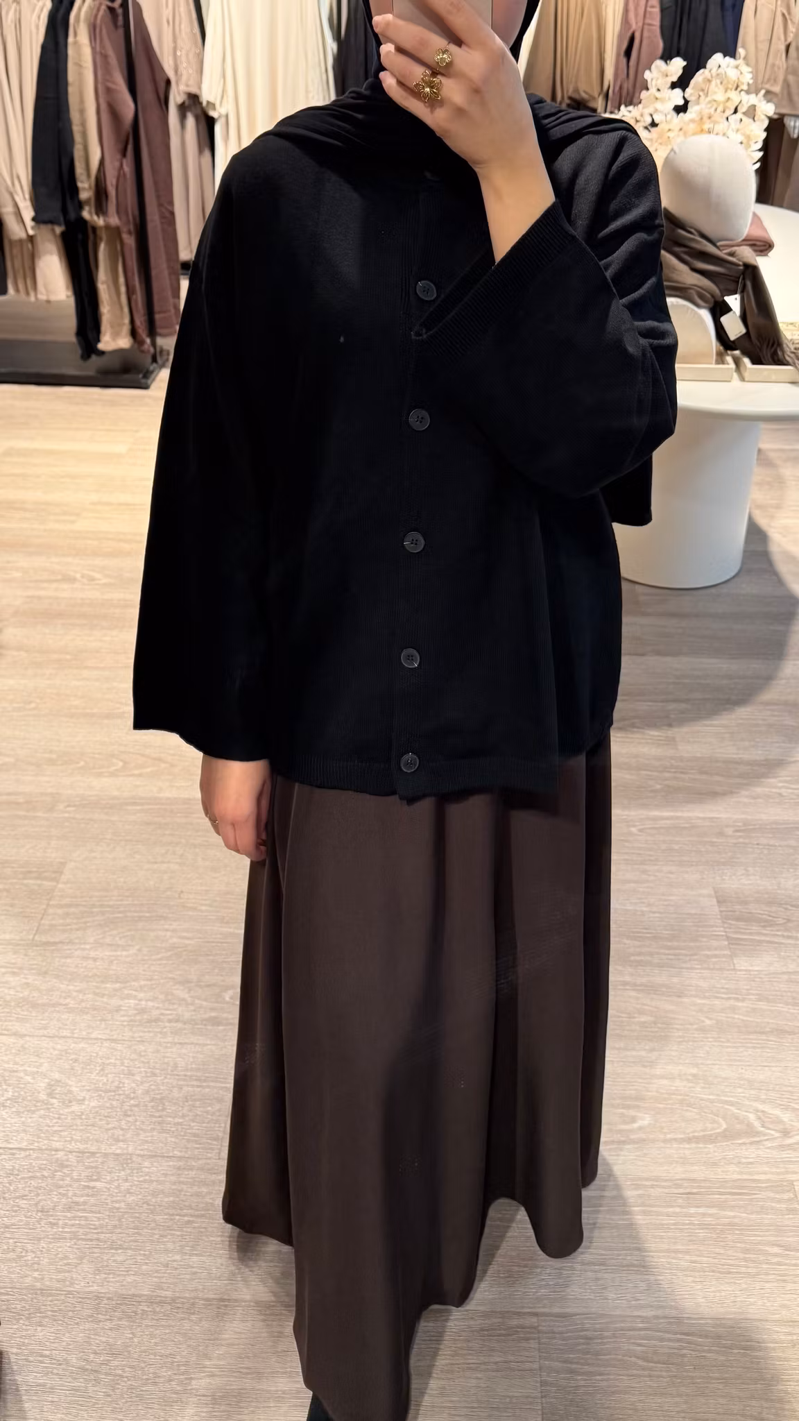 På lager CARDIGAN SVART 579 kr KJØP Artikelnummer: 570 Lengde: ca. 72 cmStørrelse: One sizeModellen er 169 cm høy og bruker str. M/L
