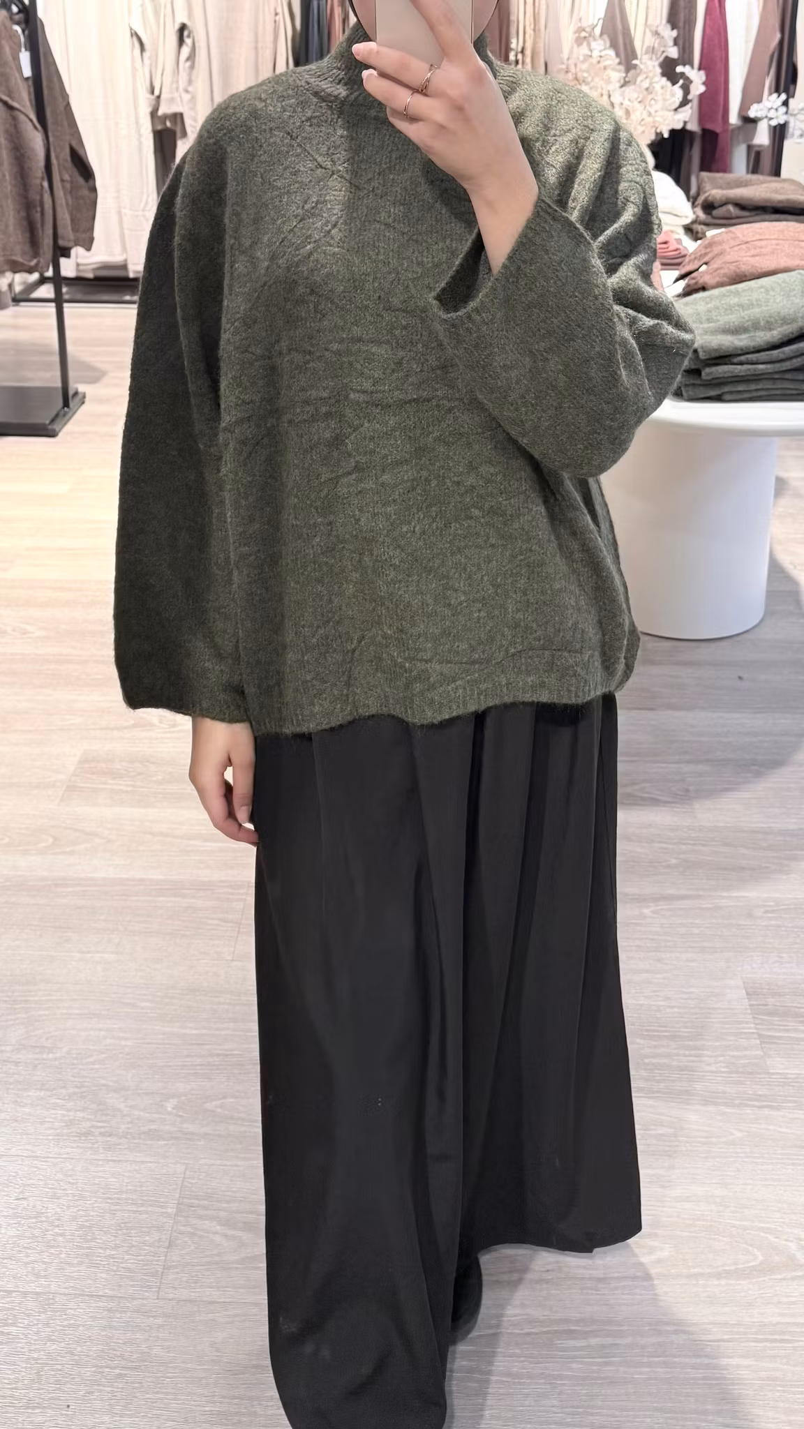 En myk og behagelig genser med halvhøy hals, elegant fall og rett passform. Det varme og komfortable materialet gjør den til et perfekt basisplagg for høstens lag-på-lag-antrekk. Enkel å style, behagelig å bruke og ideell både til hverdags og mer pyntede looks.