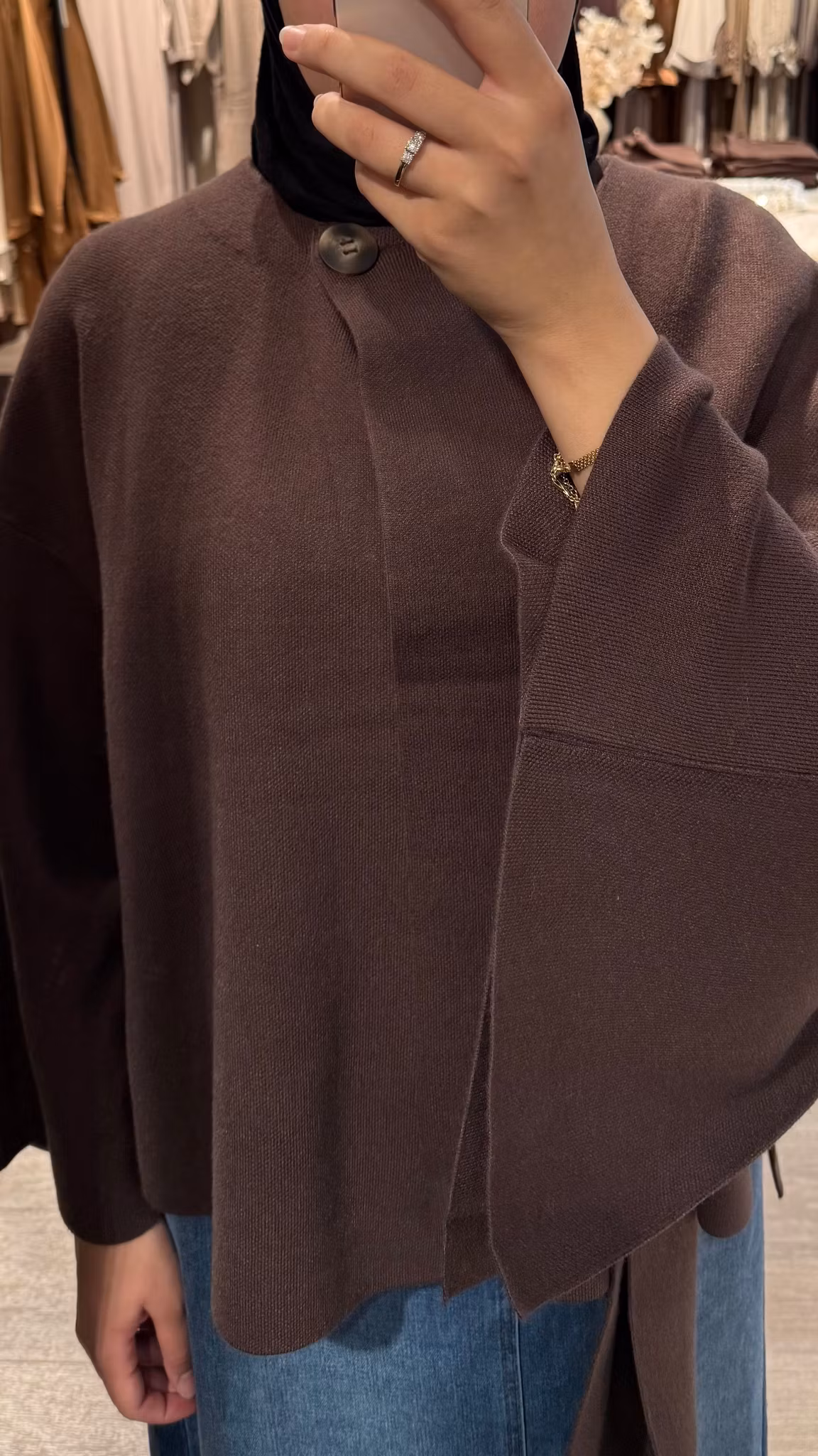 På lager Antall: 2 JAKKE MED SKJERF BRUN 899 kr KJØP Artikelnummer: 510 Størrelse: One size (passer ca. S–XL)Materiale: 50 % viskose, 28 % polyester, 22 % ullModellen er 170 cm høy